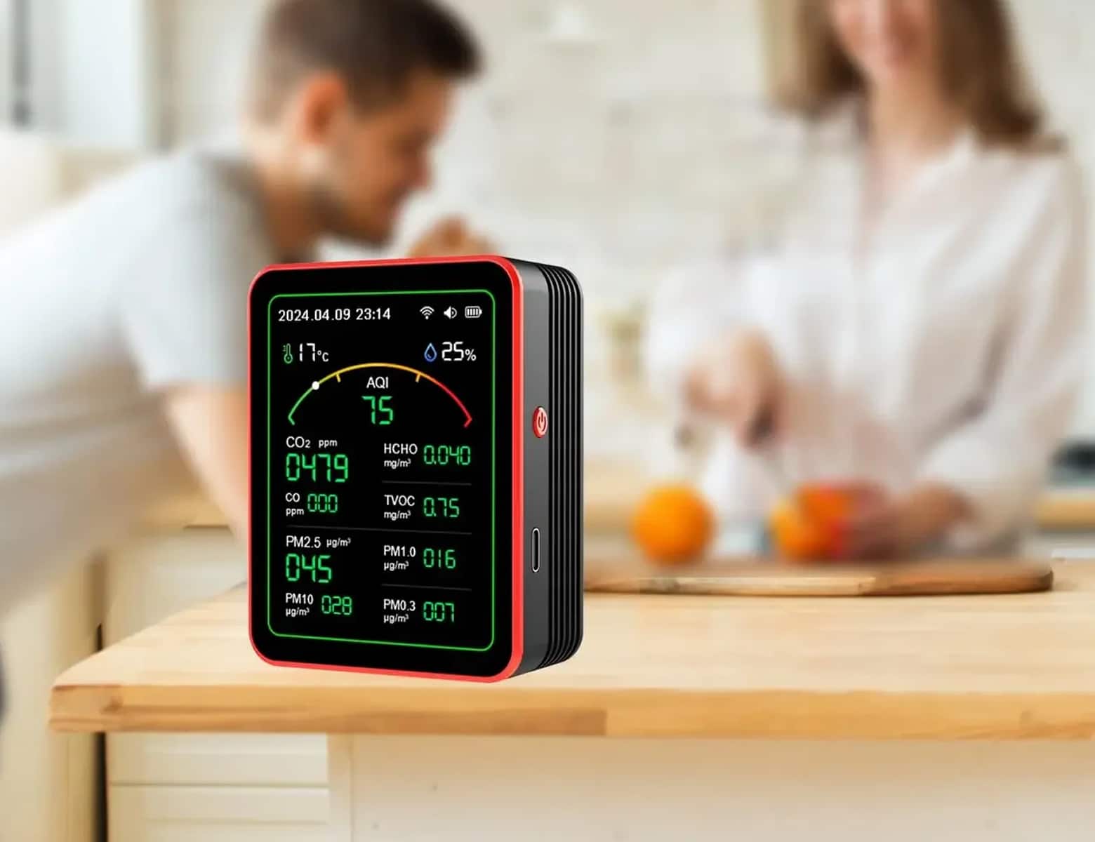 La technologie multicapteurs du AirLyzal combine intelligemment des capteurs infrarouges pour les particules et des capteurs semi-conducteurs optimisés pour les gaz, créant un système de détection qui rivalise avec des équipements professionnels coûtant trois fois plus cher. Le dispositif surveille en temps réel le CO2, le monoxyde de carbone, le formaldéhyde redoutable, les TVOC, quatre types de particules fines (PM0.3, PM1.0, PM2.5, PM10), l'indice AQI, ainsi que la température et l'humidité - un arsenal complet pour identifier chaque menace invisible dans votre air. 😊