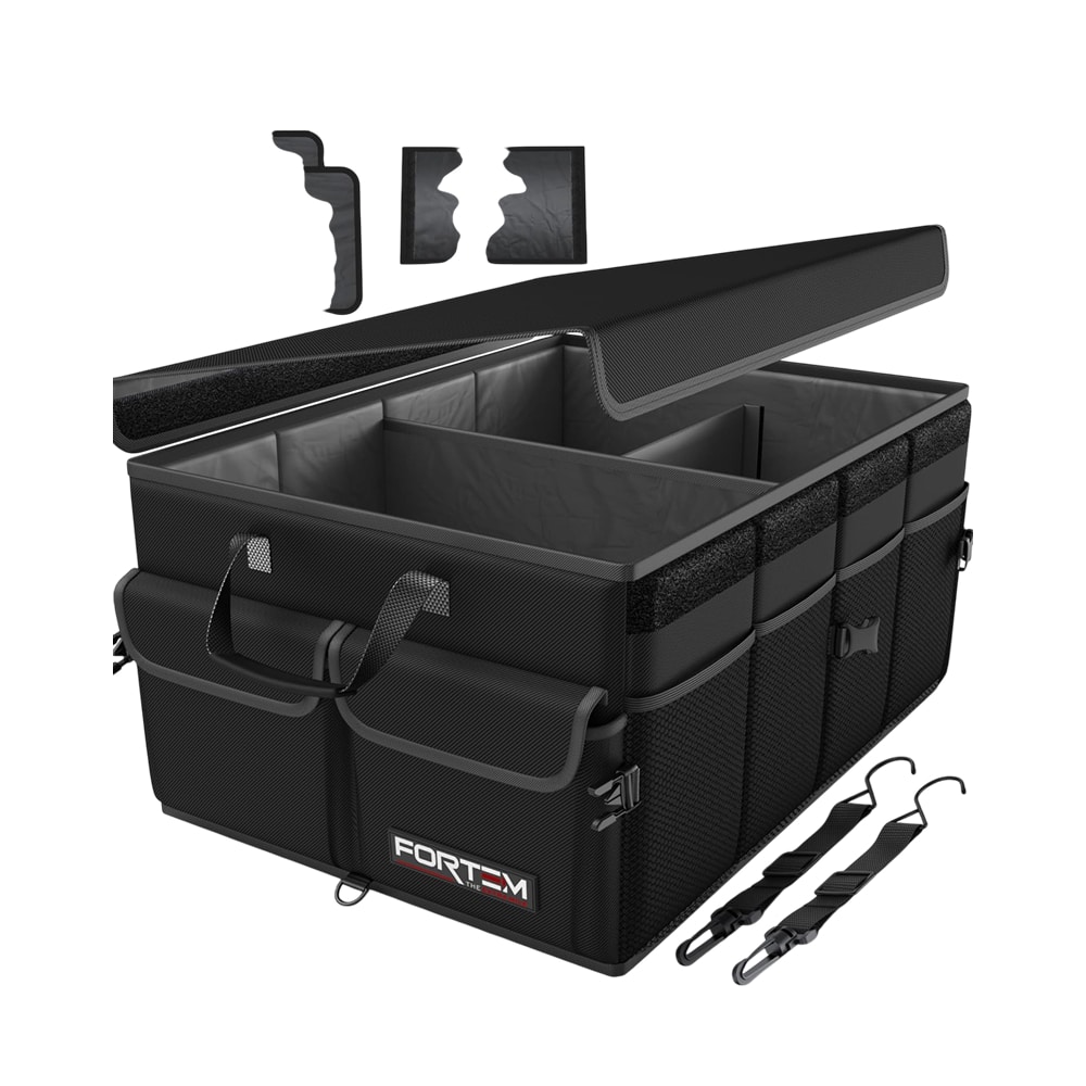 Le FORTEM Organisateur Coffre Voiture se positionne comme le champion de la stabilité avec son design de boîte renforcée par plaques de base rigides sur tous les panneaux latéraux. Cette conception premium garantit une structure solide qui maintient sa forme même sous charge maximale, éliminant l'affaissement frustrant des organisateurs de qualité inférieure.