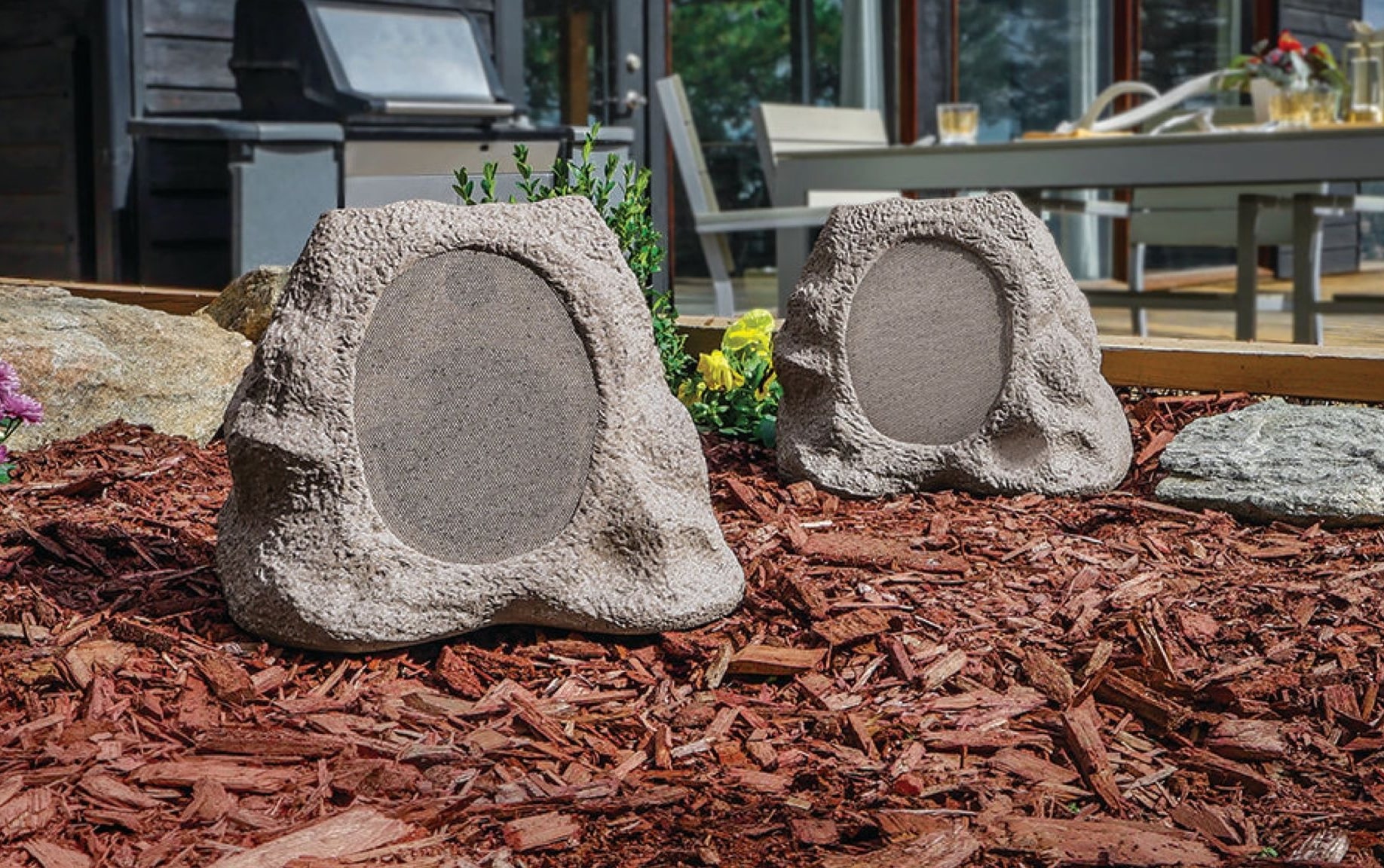 La Victrola Enceinte Extérieur est une enceinte extérieure conçue pour les amateurs de musique en plein air. Son design en forme de rocher lui permet de se fondre parfaitement dans un jardin, une terrasse ou près d'une piscine.